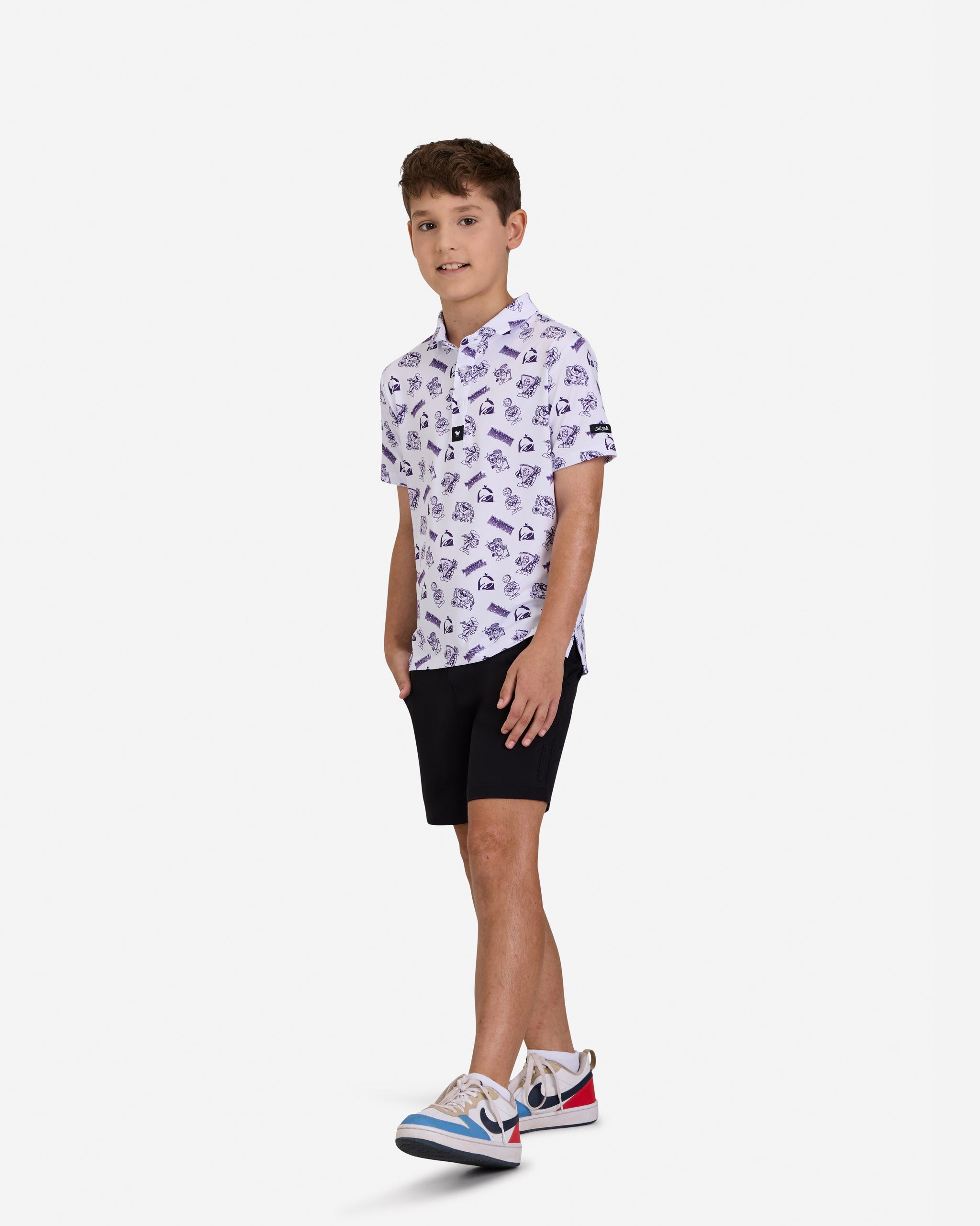 - Kid-Friendly 4-Way Stretch - Moves with their growing bodies through every swing (and cartwheel between holes)