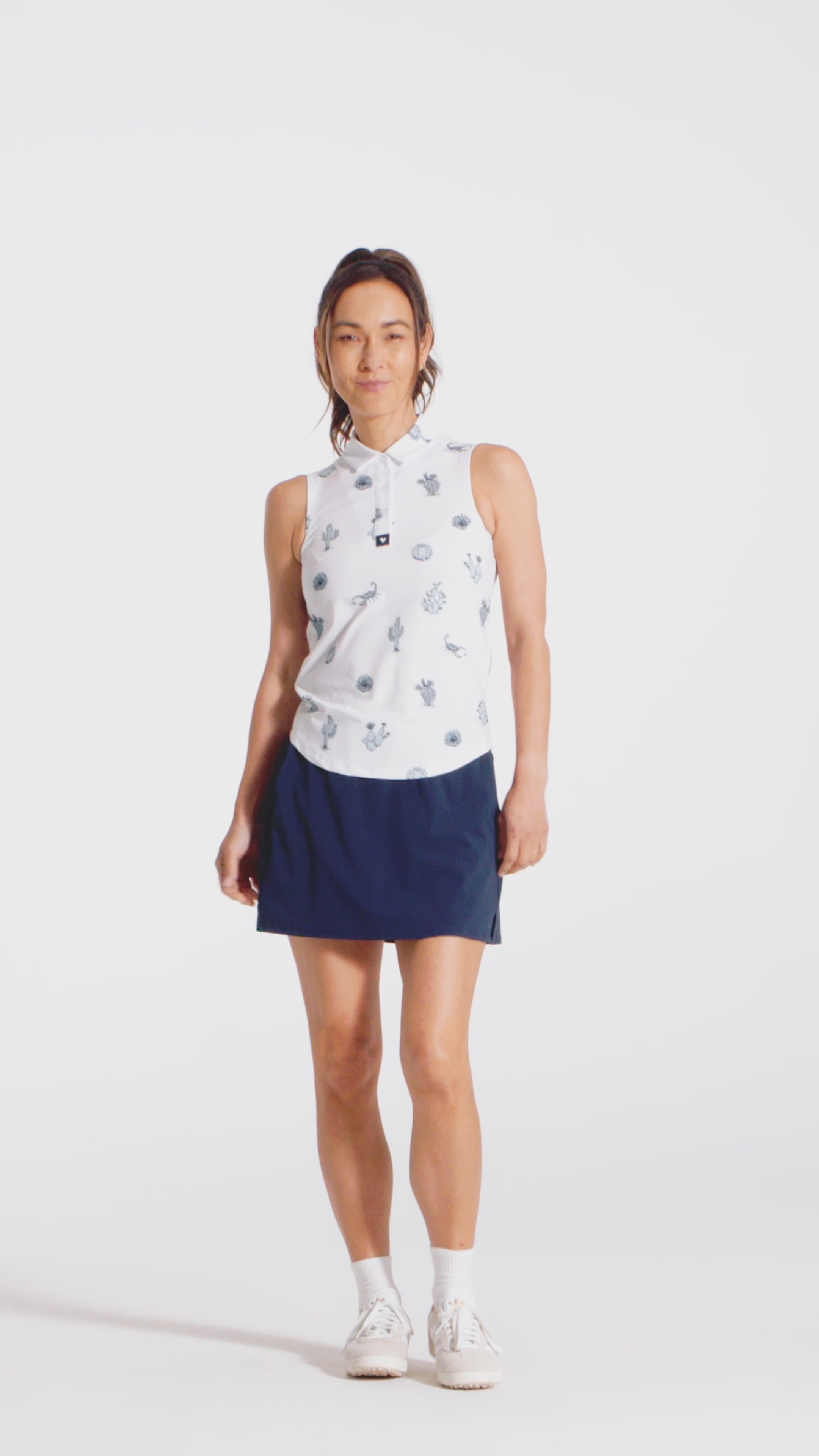 Golf's Rebellion—our sleeveless printed polo that brought confidence and style to the women's game. Engineered with performance features for golfers who aim straight for the pin, it's the Bad Birdie original that proved women's golf could be both powerful and fearless.