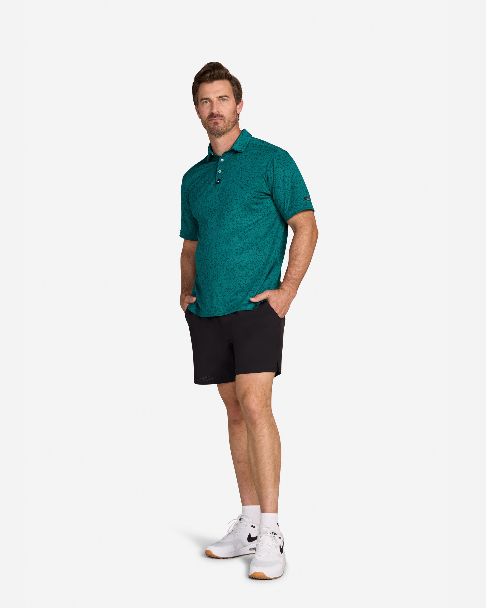 An athletic fit (slightly slimmer than a traditional, stuffy polo) with a straight body silhouette and 4-way stretch.